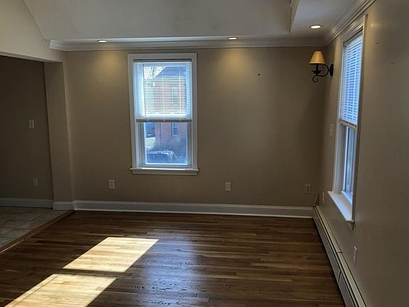 Beautiful 2nd level, 3 bedroom apartment available for rent 4/1 (possibly sooner). A large, bright, eat-in kitchen with Island. 2 nice sized bedrooms and one smaller bedroom. Hardwood floors in bedrooms and living room. Enjoy the beautiful deck off of the kitchen which is private for this unit and a small enclosed porch in the front. There is a walk-up attic for extra storage. This unit is well taken care of and spacious with 1200 ft of living space. One cat is negotiable. No dogs.