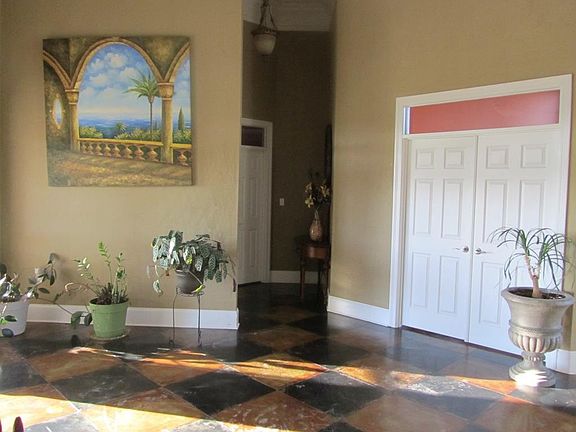 4 bedroom, 3 bath home on 2 acres. 16 ft ceilings in the entry. 14 ft ceilings in dining and gallery. Kitchen has granite countertops. GE Profile refrigerator, cooktop, convection oven, convection microwave, dishwasher, ice maker, washer, dryer all stay. Big laundry room with floor to ceiling cabinets. Stained concrete floors in main living areas. Master Bath has tub by Aquatic with 2 seats, jets