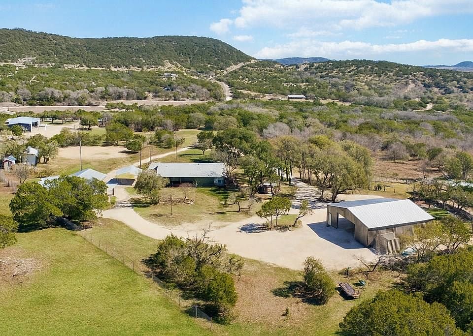 Set on over eight peaceful Hill Country acres, this rare property includes two residences-one newly built in 2022-offering both comfort and charm. Enjoy bamboo floors, solid wood doors, and quartz countertops, with classic penny tile bathrooms. A wraparound porch and sunroom with hot tub create ideal spaces to relax and take in the views. The 2,027 sq. ft. commercial-grade workshop by Texas Steel Buildings features three automatic doors, HVAC, an office, and a full bathroom-perfect for business, projects, or hobbies. Outside, it's fully fenced and cross-fenced with 5' horse fencing, plus a pole barn, chicken coop, two deer-protected gardens, fruit and pecan trees, multiple carports, RV hookup, and a circular drive. NO ZONING RESTRICTIONS, AG exempt, and endless potential-this one has it all.
