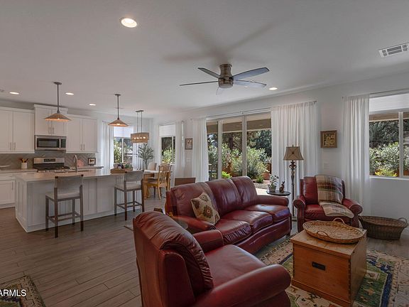 Nearly new and move-in ready, this home in the heart of the Village of Oak Creek offers modern design in an unbeatable location. Just minutes from National Forest trails and two golf courses, this 3-bedroom, 2-bath residence showcases an open floor plan ideal for today's lifestyle. The gourmet kitchen features quartz countertops, stainless steel appliances, and generous storage. The spacious primary suite includes a walk-in closet and an en-suite bath. Step outside to a beautifully landscaped and fenced backyard, perfect for relaxation or entertaining. Tucked away in a quiet setting, this home is ideal as a full-time residence or a serene retreat. Come live the Sedona lifestyle!