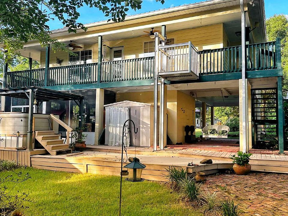 {WATERFRONT} Welcome to PARADISE on the Sister River! This beautiful home will check all of your boxes if you are looking for a semi-remote location that offers peace and quiet, along with a community of neighbors who will welcome you with open arms. The home is located in Steelfield Fishcamp on a canal that accesses the Sister River, which is about 4 miles from the Choctawhatchee River, which is another 8 miles from the Choctawhatchee Bay. This offers a beautiful boat ride to the Intracoastal waterway, Eden State Park, The Bay restaurant at the foot of the 331 bridge and many many other gorgeous places, including fresh water springs that you can explore right from your backyard. The home itself has never been rented. It is a large 2 bedroom 2 bath home that is elevated 14 ft above flood stage, but if the river does flood - (which happens every 3-5 years) you may need some rubber boots to get to your house. Downstairs offers a HUGE screened in porch area with a cook area and plenty of seating for your family gatherings. There is an elevator that is available for your convenience, which accesses the wrap-around porch that will give you a beautiful view of the water each time you walk outside. The home is equipped with all of the upgrades you would expect including granite countertops, custom cabinetry and stainless appliances in the kitchen. A wood burning fireplace will warm your heart and your soul on those cold winter mornings. The master bedroom is large with a french door to the wrap-around porch, and also features a master bath with double sinks, a large walk-in closet and a soaking tub, as well as a separate shower. The second bedroom is ample size and also has a walk-in closet with an ensuite full bath. This property is located about 25 min from Pier Park, also about 15 min from Latitude Margaritaville which is currently building a shopping center with a Publix and other stores that will be convenient to the location. The property is 9 miles from Hwy 79, and requires travel over 4 miles of unpaved roads to access the property - (see photo's), so it may not be appropriate if you do not have a vehicle that can tolerate dirt roads. There is a hot tub that will stay on the property and will not be warranted with the Lease, but the owner will allow Tenants to use the hot tub as long as they maintain it. The property is sparsely furnished as seen in the photo's. Owner will remove any furnishings that the Tenant does not wish to use prior to occupancy. Washer and Dryer are also available for use but not warranted. This property is available July 1, 2025.