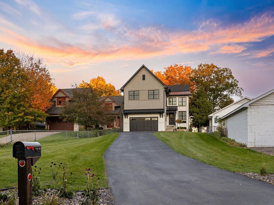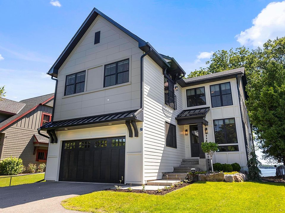 Like brand new but better!! Luxury lakeside living on A-rated Gideon Bay with panoramic views. Situated on an extra-deep lot, this custom 2021 build has 51' of sandy lake shore and a private beach. There is a chef's kitchen with a 10ft island, an 8-burner Thermador gas induction range and a dedicated back prep area. The stunning primary suite offers lake views, a spacious walk-in closet, and a gorgeous bath. There are four bedrooms on the upper level and a guest suite, above the garage, with a private entrance, kitchenette and full bath. The walkout lower-level features a wine room, a theater room, an exercise room, family room, guest room and a full bar with an ice-maker and a pass-through window to the patio bar. The garage can accommodate two lifts and is wired for supplemental heat. This location is stellar by land of by water- Enjoy front row seats to Excelsior's fireworks. It is only a few minutes to downtown Excelsior and is close to walking/biking trails. This like-new, turn-key retreat is perfect for year round living or enjoying your summers on the lake.