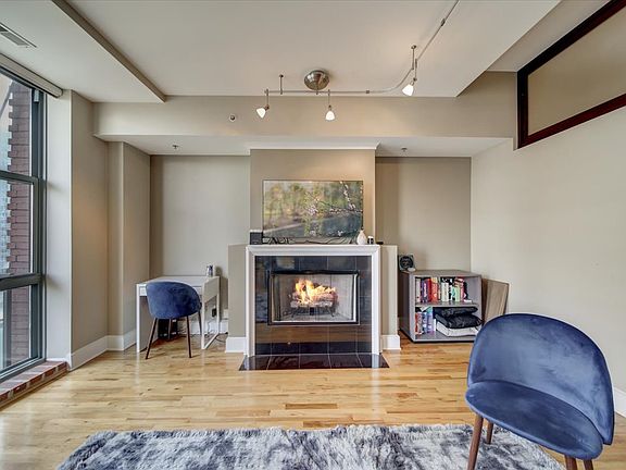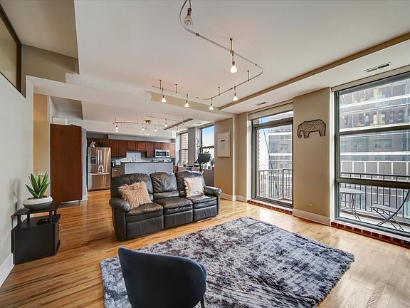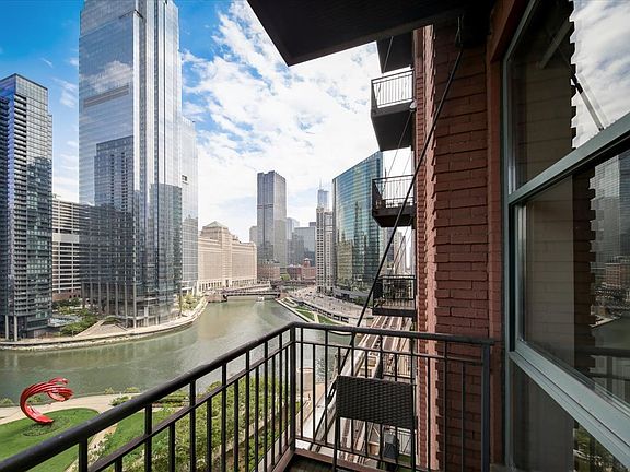 Incredible city and River views from this spacious 2Bed/2Bath Fulton River District condo! High end unit features soaring ceilings, granite countertops, stainless steel appliances, custom cabinetry, hardwood floors throughout, gas fireplace, floor-to-ceiling windows with custom Hunter Douglas window treatments, and laundry room with side-by-side washer & dryer. Primary suite has double vanity, glass shower, and both bedrooms have been enclosed for privacy. Private balcony showcase city views and STUNNING River views! Enormous 350 square foot storage room down the hall could be a home office in addition to using for tons and tons of storage. Tandem garage parking spot is additional $35,000 and makes this the ideal home! Building features fitness center, 24hr door staff, receiving room, and dry cleaners next door. Ideal location near the Metra, the Loop, the "L", the Riverwalk, and all the best restaurants & nightlife in the West Loop.