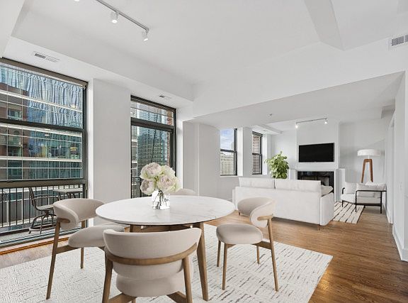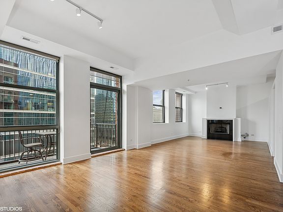 Beautiful north facing condo with stunning city views located in the heart of the Fulton River District/West Loop at Randolph Place Residences! This condo was created by a combination of two units resulting in a spacious two bedroom/two bath floorplan that is unlike any other in this tier. With large living room windows, the open flowing layout is flooded with natural light and perfect for entertaining! Kitchen was recently upgraded with new white quartz countertops, stainless steel appliances and subway tile backsplash (2022) to compliment the gorgeous Woodhaven cabinets. Other unit features include newly refinished hardwood floors (2022), fresh paint throughout & updated lighting fixtures along with 10" ceilings, in-unit washer/dryer, gas fireplace and central heat/air (HVAC brand new in 2020). The primary bedroom has a wall of closets and leads into the renovated primary bath with walk in spa like shower, double vanity and an abundance of storage. The large balcony has amazing views of the Chicago River as well as morning sunrise views to the east and evening sunset views to the west! Included in price is a separate detached bonus room across the hall that is currently being used for additional storage (350 sq ft plus) along with two tandem garage parking spots side by side (4 spots total) in a prime location in the heated garage. Building hallways, lobby and fitness center were all recently redone in addition to adding an Amazon Hub package delivery system to compliment the large building receiving room. Assessments include cable TV with HBO/Showtime & high speed internet. Randolph Place Residences is located in an unbelievable location within walking distance to all the Randolph/Fulton St. restaurants, the loop, Metra/public transportation, expressway, several grocery stores and shopping as well as the expanded Chicago Riverwalk entrance is across the street!