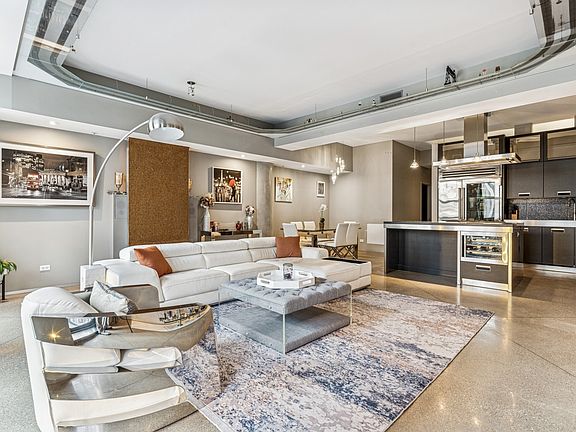 RARELY AVAILABLE AND CUSTOM UPGRADED EAST / RIVER FACING ONE BEDROOM PLUS DEN UNIT IN THE HEART OF THE FULTON MARKET DISTRICT AND MINUTES FROM THE WEST LOOP! SPACIOUS AND SUNNY LAYOUT FEATURES UNPARALLELED UPGRADED CHEF'S KITCHEN WITH SS BEVERAGE FRIDGE, MIELE APPLIANCE SUITE W/ MICROWAVE, STEAMER, COFFEE MACHINE, OVEN & DISHWASHER, GAS COOKTOP W/ HOOD & SUBZERO FRIDGE. KITCHEN FEATURES STAINLESS STEEL COUNTERTOPS, CUSTOM CABINETRY, LARGE SINK & CUSTOM BACKSPLASH. KITCHEN IS OPEN TO DINING AREA AND LIVING ROOM. CUSTOM POURED CONCRETE FLOORS THROUGHOUT THE UNIT AND TILED ENTRYWAY W/ LIGHTING IN THE FLOOR AS WELL. LIVING ROOM IS OPEN AND FEATURES A GAS FIREPLACE AND FLOOR TO CEILING WINDOWS W/ LARGE BALCONY OVERLOOKING THE RIVER AND 150 N. RIVERSIDE GREEN PARK. SPACIOUS BEDROOM W/ WALL TO WALL CLOSETS. HIGHLY UPGRADED BATHROOM FEATURING BUILT IN STORAGE AND TV ALONG W/ HUGE STEAM SHOWER W/ BODY SPRAYS. DEN IS A GREAT OFFICE AND ALSO FEATURES IN UNIT LAUNDRY. UNIT HAS CUSTOM LIGHTING THROUGHOUT AND WAS CUSTOM DESIGNED TO BE ONE OF A KIND, RANDOLPH PLACE RESIDENCES FEATURES FITNESS CENTER, 24 HOUR DOOR STAFF, AND ON SITE DRY CLEANER. ALL THIS WALKING DISTANCE TO CHICAGO'S BEST RESTAURANTS, BARS, GROCERY SHOPPING, PUBLIC TRANSPORTATION, THE EXPRESSWAY AND MORE!