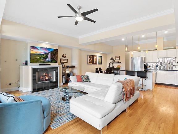 This beautifully renovated 1 bed, 1 bath loft lives like a two-bedroom thanks to a unique bonus room-perfect for an office or guest space. Sunlight pours in through soaring crown-molded ceilings, highlighting the hardwood floors, cozy gas fireplace, and custom built-in cabinetry in the living room. The chef's kitchen boasts upgraded stainless steel appliances, custom light fixture, granite countertops, and a matching backsplash. The oversized primary bedroom offers exceptional closet space, while the spa-like bath features a quartz double vanity, soaking tub, and separate walk-in shower. Enjoy your own private balcony, in-unit front-loading washer/dryer, and central heat/air. Full-amenity building with fitness center, 24-hour door staff, on-site management, maintenance, and package receiving. Monthly assessment includes cable TV and wifi. Premier interior garage parking (P38) available for $30,000.