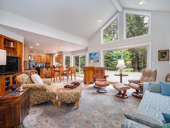 Very peaceful & quiet, on a dead-end road, this well maintained home is located across the lane from the #6 fairway of the Agate Beach Golf Course. The south facing great room features the living room, dining area, & kitchen, all with lots of windows to take in the forested view. The spacious primary bedroom includes remodeled en-suite bath. The bonus room can be used as a den, office, 4th bedroom for extra guests, or just a quiet retreat. Accessed from outside or through the garage, an apartment conversion could work too. The park-like backyard with full length patio, is great for entertaining or to just enjoy nature. Close to shopping, the beach, & golf, this wonderful home is a must see!