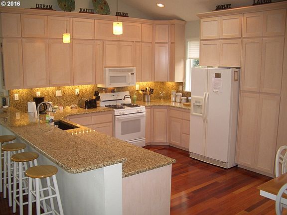Majestic ocean & forest views from this beautifully updated open concept design home w/custom finishes thru-out! Newer Brazilian Cherry hardwood floors, remodeled kitchen w/new solid maple cabinets & granite counter tops. Vaulted ceilings, gas fireplace at living room, master suite w/ocean view deck and remodeled bath, 2 guest bedrooms & large family room with cork floor. Beautifully landscaped easy care yard with firepit.