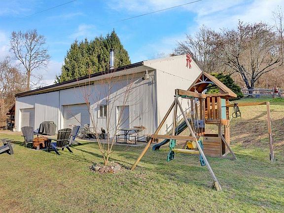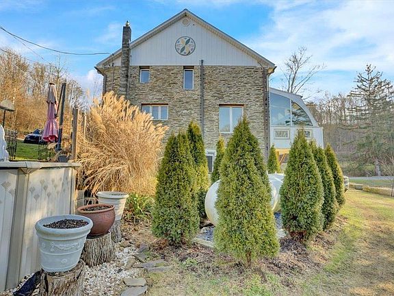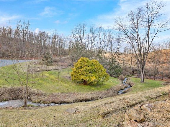 Be one with nature in this peaceful and quiet retreat offering magnificent views in every season, mountain stream and rustic ambience with plenty of room to indulge a variety of interests. Circa 1840 Pennsylvania bank barn converted in the late 1970s is now a beautiful country home on 12.56 acres of land in Albany Township Berks County. The home features a custom kitchen with Italian tile floors & granite counter tops; newer roof, HVAC and well pump; and upgraded electric. As you enter the front door the expanse of the open first floor great room area expanding into the kitchen/dining area, office nook and sunroom greet you. The cathedral ceilings draw your eyes to the second floor open staircase overlooking the first floor. The first floor also offers a separate family/living room, laundry room, half bath and large walk in closet. The second floor offers 3 bedrooms and two full baths. Walk up attic (don't miss the stone wall in the stairwell leading from the first floor to the attic) provides additional space. Approximately 1400 square feet finished space in the walk out lower level is easily accessed from the sunroom or back yard and ready to bring your visions to life. The large 60x34 garage/barn with 3 bays and two overhead doors and 12 ft ceilings has seen many gatherings of family and friends enjoying the wood stove on the raised stone hearth in the first two bays. The third bay has been utilized as a workshop. There is also a loft area.