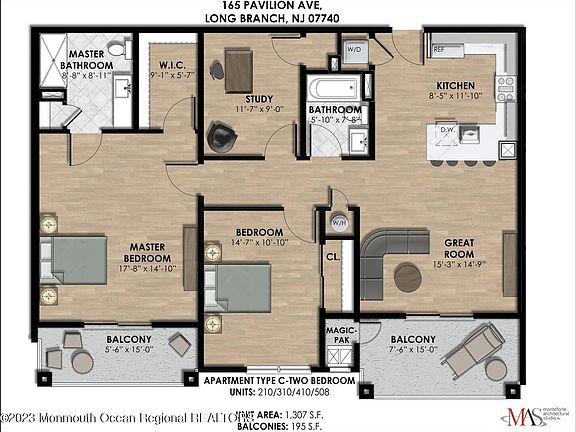 This 1307 square foot apartment home has 2 bedrooms and 2.0 bathrooms. This home is located at 165 Pavilion Ave #210, Long Branch, NJ 07740.