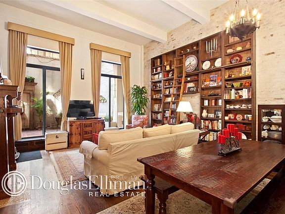 PRICE ADJUSTMENT. Welcome to this breathtaking oasis on an iconic cobblestone street in the heart of the West Village. This completely renovated one-bedroom + sleeping loft / convertible two-bedroom home features soaring ceilings, a remarkable 400+ square-foot patio and the perfect balance of old-world influences and modern conveniences. Double-height ceilings rising over 14 feet high will draw you into this 1,350-square-foot home's spectacular great room. An expanse of brick stretches to the beamed ceilings overhead while rich hardwood floors pave the way to the dramatic wood-burning fireplace. Tall glass doors usher in bright sunshine from the tranquil patio -- an enchanting and secluded space where brick pavers and tall walls are accented by European design elements. The sleek open kitchen has been meticulously updated with the finest appliances and materials. Custom millwork with WAC under-cabinet lighting, chic tilework and striking custom stone countertops surround a Bertazzoni oven and range, Fisher & Paykel refrigerator, Miele built-in coffee system and KitchenAid dishwasher. The tranquil bedroom suite features more sky-high beamed ceilings and another glass door to the patio. A massive walk-in California closet effortlessly attends to wardrobe needs while the brand-new, spa-like bathroom spoils with white Carrara marble heated floors, a Kohler Tea-for-Two deep soaking tub and separate glass shower, oversized dual-sink vanity and Robern medicine cabinet with GFI integrated outlets. Upstairs, a sprawling loft space, with distinctive arches that peek into the vast great room below, is ideal as a home office, guest suite or second bedroom. No expense was spared in updating this special West Village home. A stylish powder room has been added, closets throughout are fully customized, a GE washer/dryer adds convenience, new Mitsubishi Mr. Slim ductless system ensures year-round comfort, and updated wiring and a new electrical panel have been installed. 165 Perry Street is an exclusive pre-war co-op with just 21 apartments. The pet-friendly building offers on-site superintendent and bike room. Set on a desirable, tree-lined block in the coveted West Village, adjacent to the 550-acre Hudson River Park, bikeways and walking paths, this home is surrounded by world-class dining, nightlife and shopping. Visit the Spotted Pig, White Horse Tavern and Magnolia Bakery, all within blocks, or head just minutes along the Hudson River to the new Whitney Museum and the High Line. Transportation is fantastic with 1, A/C/E, B/D/F/M and PATH trains nearby. Shown by appointment only. Open houses are not permitted.