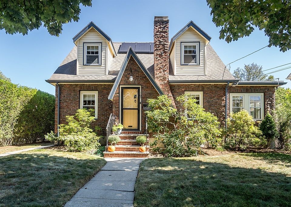 Live in the heart of cozy West Medford & enjoy the outdoors in this adorable Tudor style cape! Located on a beautiful tree lined rd .4 miles to W. Medford Comm Rail, steps from Fells trail head, parks, restaurants, Mystic Lakes & Winchester Line; this home that welcomes you to the outdoors will melt your heart. 1st floor offers updated kitchen w/stone counters, stainless steel appls (new fridge/stove) & peninsula open into dining room, 1/2 BA & 1BR. Living room is complete w/ fireplace & other period details; crown molding & arched doorway to the sunroom; a glass door opens up onto covered deck overlooking fenced yard w/ architect designed perennial garden, bluestone patio/pavers & irrigation. A central staircase grounds the living space & invites you up to the 2nd fl where there are 2BRs w/ generous closet space & full BA. Updated LL makes for ideal family rm, office, guest & exercise space w/add'l storage & lndry rm. Garage, electric car charger & drive for 3 cars complete this home.