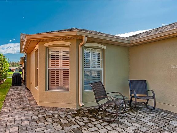 Enjoy the sunrise from your beautiful glass enclosed 360 sq ft Florida room (w/heat & air conditioning) or bbq in your screened lanai (15'x15’') while enjoying a beautiful water view - what a way to begin your day in paradise. Florida room has its own A/C & hearing unit. This is a Bordeaux floor plan with all your preferred features like CERAMIC TILE FLOORING THROUGHOUT, new UPGRADED KITCHEN with new granite counter tops and backsplash, custom pantry, OPEN VIEW into LR/DR and Florida room, UPGRADED APPLIANCES, new stainless steel refrigerator, new glass top stove, microwave, new washing machine. Plantation shudders throughout house. New granite with double sink in master. New shower doors in master. Driveway has been widened to easily accommodate two full size cars. Interior and exterior of house newly painted.
