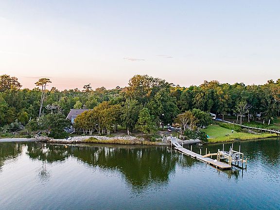 Stepping out the back door, you exit onto an expansive screened porch with doors on either end. Exterior to the home, you enter a recently built utility room housing the water heater and crawlspace access, which is fully enclosed with lights and plastic barrier. A seawall surrounds the entire length of waterfront on the property, and in case of emergencies, the house is wired for generator power. A sprawling live oak tree along the bank hosts a custom-built treehouse complete with a tunnel slide, fireman pole, and more. Finally, you come to the most peaceful point on the property: a floating dock and boat ramp overlooking Chadwick Bay and the ICW where you witness the most spectacular sunrises and sunsets. An easement access to the dock for the next door neighbors allows a shared responsibility to upkeep the space, and with over 175’ of waterfront on the property, you won’t have any trouble expanding or adding a second pier.