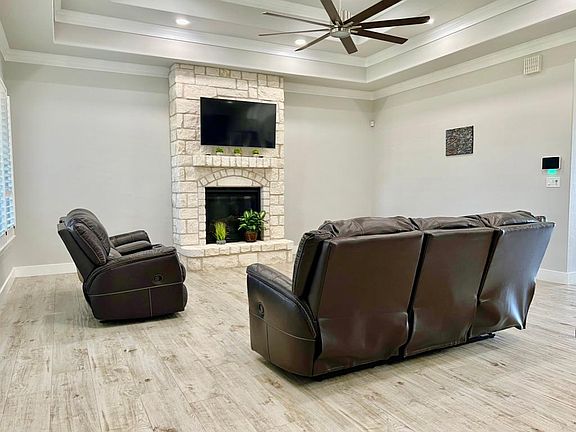 Stunning 2020 built 4 bedroom/3 bath home located in the desirable Rolling Winds Addition in east Odessa. Quiet neighborhood but close to everything! Beautiful double wrought iron doors lead into the grand foyer and the spacious open concept floorplan with tile floors and soaring ceilings. Chef's dream kitchen with an oversize island overlooks the living room and fireplace. Sequestered primary bedroom suite with spacious bathroom and large closet with built-ins. Nice sized landscaped backyard. $40 application fee per adult. Non-refundable pet fee.