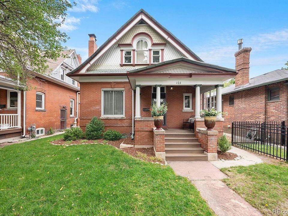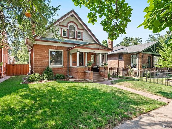 NEW floors and NEW carpet in this 2-story Victorian on a tree-lined street close to popular Wash Park with its boathouse, fitness center, playgrounds, sport courts, and walking/biking/rolling trails around multiple lakes! Ideally located 5 minutes to Cherry Creek's upscale shopping district and a 10-minute drive to downtown Denver, including Ball Arena, Empower Field at Mile High, and Coors Field. Four bedrooms total: Two bedrooms plus a bathroom on each level offers a classic Denver home layout. Uniquely high ceilings throughout, plus an elegant, spacious kitchen with original exposed brick, granite counters, luxuriously tall cabinets, newer stainless steel LG appliances including InstaView fridge with glass window to see inside without opening the door. Versatile sunroom or mud-room off the kitchen opens to a landscaped backyard with grass area, flagstone patio, brick garden beds, and detached garage. Cellar basement features a separate entrance/exit to and from backyard for added functionality and also boasts additional living space, generously sized laundry room, plus plentiful storage in the unfinished area that is fully lined with newer plastic vapor barrier. Central A/C for modern convenience. Radon mitigation system for peace of mind. Thoughtfully preserved vintage details throughout the home, including original doorknobs, hinges, wood turnings, and trim add touches of historic elegance.