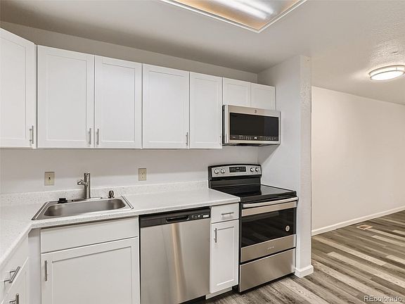 Back on the market due to buyers finances. It's your chance! Get a fresh start with this completely remodeled single bedroom, one bath condo located in the heart of Aurora. This condo has been updated throughout with fresh paint, luxury vinyl flooring, and appliances; which all add to the contemporary fresh feel of the interior. The kitchen has beautiful new white cabinets with modern silver pulls that coordinate nicely with the dishwasher, stove and over the range microwave. The bedroom features a large closet and lots of natural light. A new furnace and water heater will give extra peace of mind in your investment. This condo is located in close proximity to public transit, light rail and within walking distance of shopping and a variety of restaurants, including In N Out! A short walk or bike ride will take you to enjoy the serenity of the duck pond at City Center Park. The unit also comes with a reserved parking spot.
