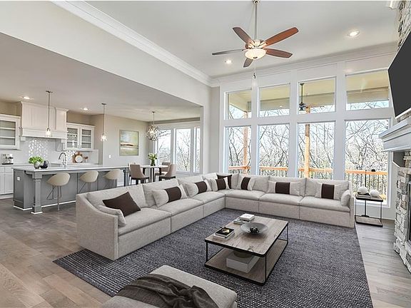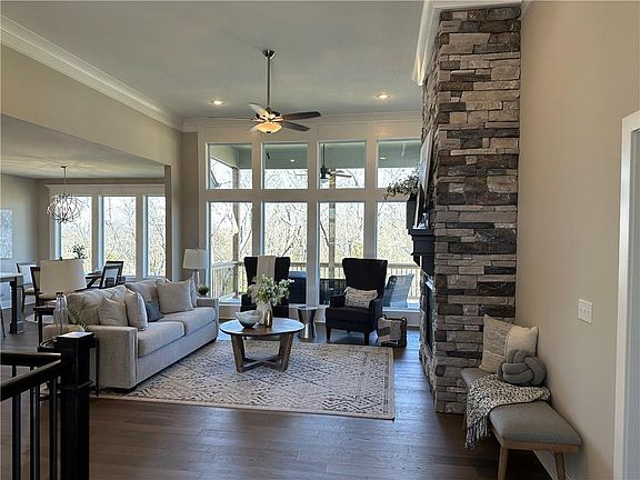 Welcome to luxurious living in Prairie Farms, showcasing the stunning Dakota floor plan crafted by Prieb Homes. This well-thought-out residence offers an exceptional blend of style, functionality, and privacy. This property backs up to serene green space, providing not only a picturesque backdrop but also ensuring privacy and tranquility. Boasting 4 bedrooms and 3 bathrooms, this home provides an abundance of space for comfortable living and entertaining. The mudroom offers a boot room plus storage with doors to close off those sports, work and book bags. Kitchen is a dream with extra cabinet space, walk in pantry with frosted glass doors, primary bedroom has free standing tub, raised vanities and more. Enjoy the convenience of a spacious 3-car garage, providing ample storage and parking options. Step into the lower level featuring a walkout basement with a generously-sized rec room and nice sized wet bar. Walls of windows and garage storage area perfect for entertaining. This home has seamlessly connecting indoor and outdoor living spaces that backs to Olathe Lake area. Experience an infusion of natural light throughout the home, courtesy of the expansive windows that showcase the beauty of the surroundings. Bar located at bottom of stairs is perfect for multi generation living or an extra space for entertaining. Be greeted by an open-concept entrance that sets the tone for the home's modern and inviting atmosphere. Revel in the grandeur of high ceilings that add to the sense of space and sophistication. Photos are of actual home.