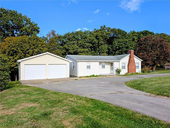 This beautifully updated ranch home sits on a level lot with a convenient circular driveway and a detached 2-car garage. Inside, you'll find all-new flooring and appliances, creating a fresh, modern feel throughout. The kitchen features a counter-height eating area, perfect for casual dining. A spacious office or bonus room provides extra versatility, whether you need a home office, playroom, or hobby space.
