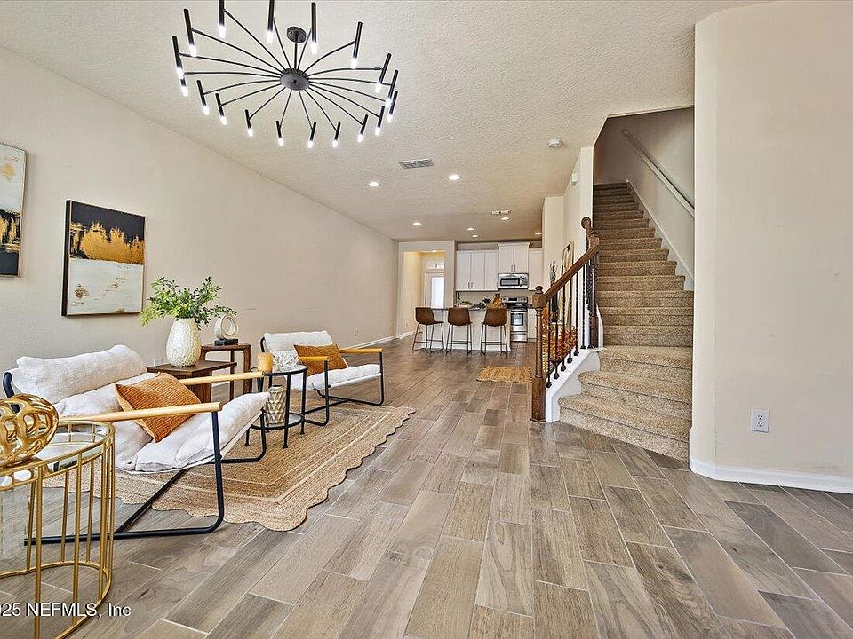 Welcome to your new home located in Durbin Crossing's Palisades Neighborhood. This lovely bright   3 bedrooms 2.5 baths townhome offers a large open concept 1st floor with spacious kitchen and wide granite island , dinning room area and family room facing the large yard and screened in patio .