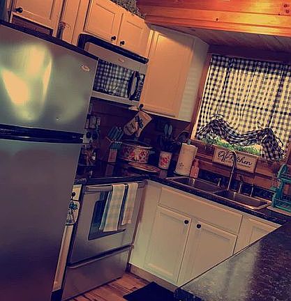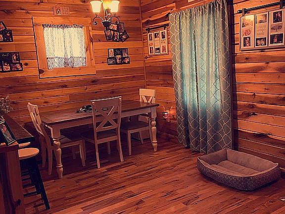 This charming 2-story, 2-bedroom, 2-bath cabin features gorgeous hardwood floors throughout and a spacious front deck overlooking a large, stocked pond filled with bass, catfish, and bluegill. Enjoy fishing right from your deck or take out the included paddle boat for a relaxing ride across the pond.