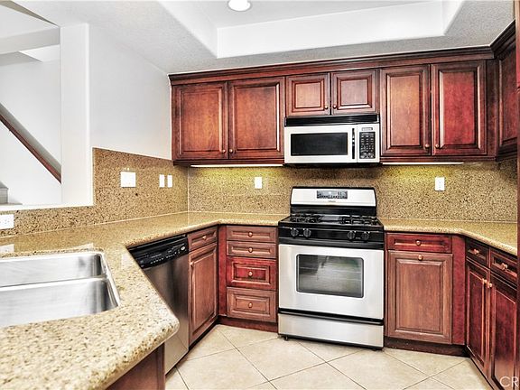 PREMIUM end unit location with Soaring Cathedral Ceilings in upscale Quail Hill's Casalon featuring 3 bedrooms, 3 baths and a 2-car direct access garage with additional storage space! Generously upgraded with elegant tile and wood laminate flooring (No Carpet), custom paint, ceiling fans, plantation shutters, mirrored closet doors and MORE! Light & Bright throughout! Open kitchen comes complete with solid granite counters/backsplash, stainless steel appliance package and a dry-foods pantry! Primary suite with dual closets and dual sinks! Enjoy the upscale Quail Hill dining venues, resort-style amenities and of course award-winning University High and Alderwood Basics Elementary!