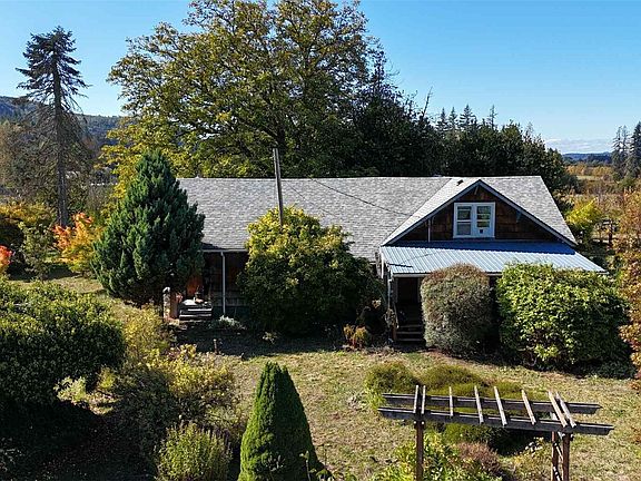 Practicing organic fruit and vegetable farm on 5 acres with a 1940's farm house, complete with basement for storing canned goods. See the "fruits" of your labor here, 3 nut trees, 13 variety of berries including red, yellow, black rasp, strawberry, blackberries, gooseberries, blueberries, elderberry, lignon berries and cherries. 7 varieties of Plum, 2 pears and 2 Asian pear trees. GRAPES for table and wine! Asparagus beds, garlic, horseradish, all the annual vegetables can name are here and thriving. The chickens have a villa! Multiple coops, seperate yards and happy birds.Enjoy the extra large patio with a view of the cozy shaded arbor, the private back deck of the main bedroom or the potters art studio,maybe a woodworker?More info