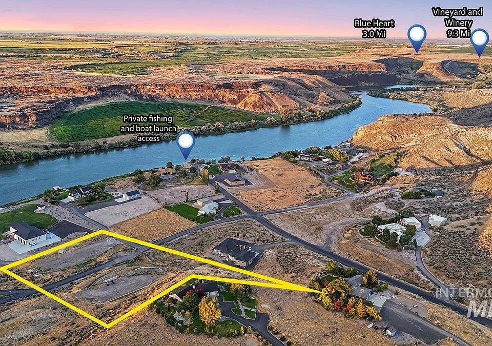 One-of-a-kind building lot nestled in Hidden Landing, with a million-dollar view of the Snake River, canyon walls & incredible Idaho sunrises and sunsets. The building lot is ready for your dream home AND shop to be built. Grading & engineered retaining walls are complete along with a WELL and POWER. Enjoy the private neighborhood boat launch & fishing dock, giving you quick access by boat or kayak to the famous Blue Heart Springs, 1000 Springs, Ritter Island, fishing, & so much more! This unique lot is divided, giving you the option to build a dream shop below and your dream home with a panoramic view. Kick back on the neighborhood sandy beach and picnic/gazebo area. Soak in beautiful landscape & wildlife- deer, elk, beavers, large birds and river otters. Close to natural hot springs, winery & more! Perfect opportunity to be able to snag a jumpstart on your dream build!