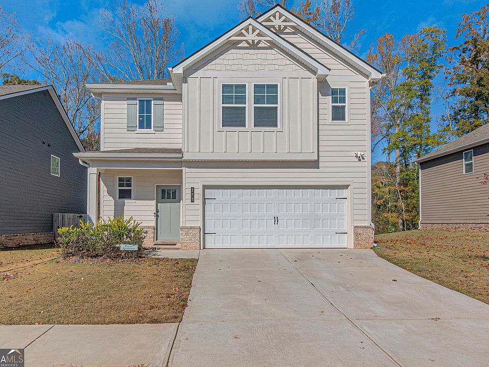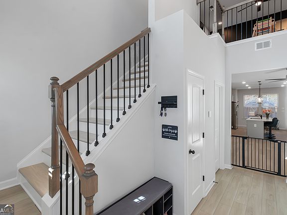 Beautifully maintained home featuring a private primary suite with a full bath conveniently located on the main level, plus an elegant owner's suite upstairs. The second level also offers two spacious secondary bedrooms and a large loft-perfect for a playroom, office, or additional living space. The open-concept kitchen boasts an oversized island, quartz countertops, stainless steel appliances, and views of the breakfast area and family room, making it ideal for entertaining. Enjoy a fenced backyard that backs to wooded views and take advantage of resort-style community amenities including a pool, cabana, and playground.