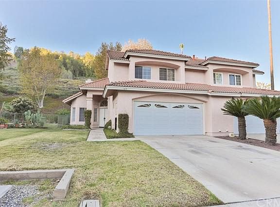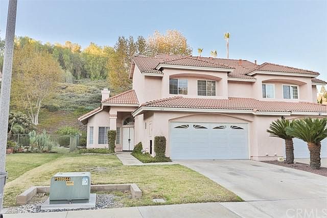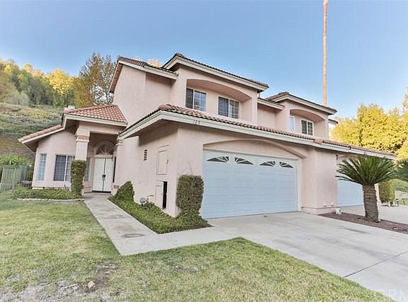 Welcome to the Villas in Rancho Via Verde, This home features a nice open floor plan with 1767 sq ft of living space, vaulted ceilings and a nice fire place in the Living room, newer paint and carpet inside. Den/small bedroom and half bath down stairs. 3 bedrooms and 2 full baths upstairs. Large master bedroom with walk in closet and master bath. Quiet cul-de-sac. Laundry hook ups in the 2 car garage.