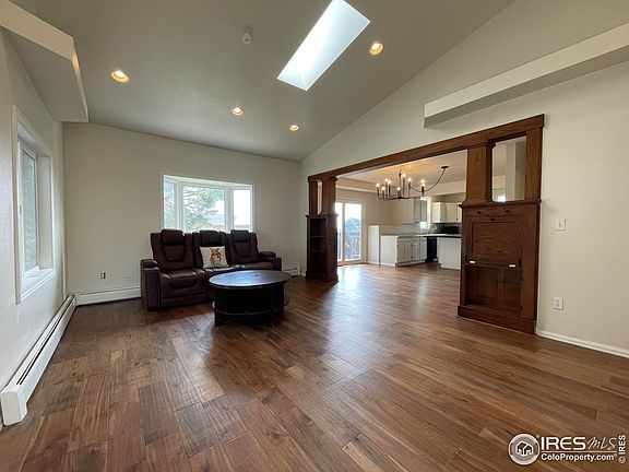 Take a good look at this one and make it yours! This charming move-in ready home, with its covered front porch and brand new deck, sits on a large lot on the West side of town. The home boasts a brand new roof, high ceilings, new hardwood flooring throughout. The skylights in the living room allow extra natural light for a spacious feel. The wooden posts and shelving was left untouched and add so much character. A hand-built wooden countertop on the island, new light fixtures and ceiling fans, give a modern feel with a new coat of paint throughout. The basement has a great room with a wet bar and a wall AC. The yard has beautiful trees, an underground sprinkler system, and sports a large privacy-fenced back yard with a large patio area and raised beds for gardening. The alley gives access to extra off-road parking space for at least 3 vehicles, boat, or RV. The garage has a new roof and a new overhead door.