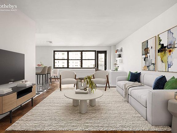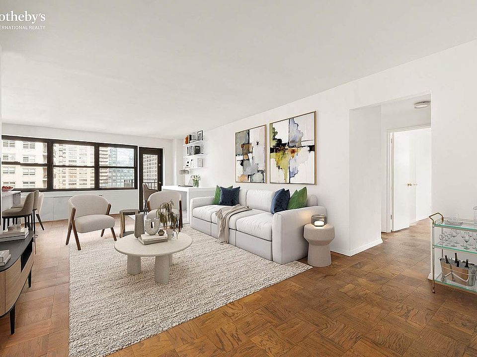 Perched on the 18th floor of 165 West End Avenue, this light-filled, corner two-bedroom, two-bathroom home offers sweeping Eastern & Southern exposures with breathtaking city skyline views. A quiet oasis in the sky.