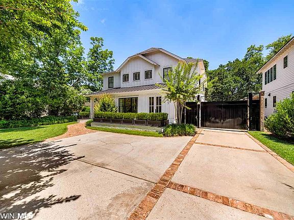 PRIVATE OASIS in the heart of Fairhope's most desired Fruit & Nut district! An easy walk to Mobile Bay and downtown, this Home and separate Guest House were extensively re-built in 2018 and decorated by Stanley Ellis using the finest materials throughout including new Hardwood floors, LED and updated light fixtures, Custom rugs & window treatments. The Main Home offers 5 Bedrooms, 4.5 Baths, formal Dining Room with Fireplace, Chef's Kitchen with Quartz and Marble countertops, Wolf and Sub-Zero appliances, Pot-filler, Built-in Butler's Pantry, Wet-Bar, upstairs Den, Screened Porch with a second Fireplace, Custom Fountain, Smart home technology with Security and Camera system, whole house Generator, and Tankless hot water heaters. The Gated Entry with 8' Privacy wall and Fencing leads to a gracious separate Outdoor Entertainment space and double Garage that is heated & cooled, previously used as Artist Gallery (not included in Main house square footage). The outside staircase over Garage takes you above to the 630' Guest House. The professional Landscaping with auto Sprinkler System, French Drains, and Citrus Trees add the finishing touches to the one of a kind property. All information provided is deemed reliable but not guaranteed. Buyer or buyer's agent to verify all information.