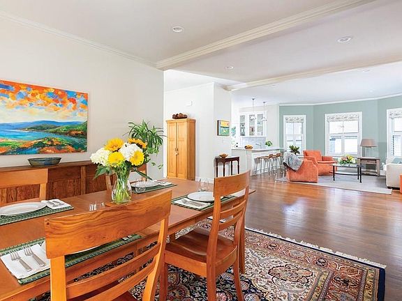 A lovely front porch leads to this phenomenal ten-room condominium, set in a two-unit residence surrounded by mature trees, that underwent an amazing renovation. The floor plan, with soaring high ceilings and incredible light, features wonderful living space with an expansive living room, with a fireplace, and a dining room opening to a state-of-the-art kitchen. There are four bedrooms and four designer bathrooms. The spacious primary bedroom has a walk-in closet with cherry built-ins and a marble-appointed bathroom. Other highlights include a convenient main level office, hardwood flooring throughout, central air-conditioning, and fantastic closet and storage space, including private storage in the basement. For outdoor enjoyment, there is a grand patio area with green space - perfect for al fresco dining and entertaining. A garage parking space plus an outdoor parking space are included. This property is set in an excellent location near Coolidge Corner shops and restaurants.
