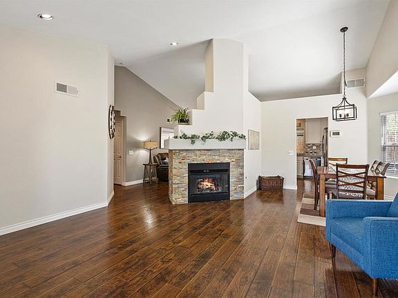 Gorgeous single story home, updated and in move-in ready condition! Vaulted ceilings, newer wood-look flooring and inviting two-way fireplace welcome you in to this special space with 3 nice-sized bedrooms, 2 full baths including a master bedroom with ensuite bathroom with two-sink vanity and skylight overhead. Exquisitely updated kitchen includes gleaming counter tops and backsplash, newer appliances and reverse osmosis drinking water system. OWNED solar panels, whole-house water softener, fireplace facing both the living and family rooms, 2-car attached garage and well-maintained landscaping with fully-fenced backyard are other bonuses! Enjoy the covered patio in the back and soak up family time around the fire pit. The spacious side yard is perfect for RV parking, a dog run or more play space for the kids! Walk through this lovely neighborhood to the elementary and high schools and to Brubaker Park about a quarter mile away. Hiking trails are about five miles away at Diamond Valley Lake! Come take a drive down this clean, quiet street and experience this beautiful home for yourself!