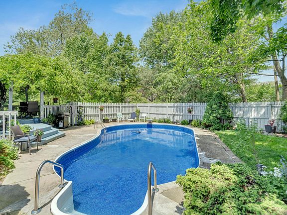 Vacation Every Day with your heated inground pool! Something for everyone in this Indian Trails 3 bed 2.5 bath 2 story featuring soaring volumetric coverage, skylights, loft, finished basement, primary suite with cathedral ceilings, new shower, double sinks and double closets! Living room and dining room feature real hardwood floors and the family room boasts a brick wood burning fireplace! New pool liner 2023, battery backup sump pump, drinking water filter system, new glass in all windows, tiled bathroom floors, and new roof 2021. Prime location on a quiet cul-de-sac in a beautiful neighborhood with lakes and a park! Gorgeous 360-degree landscaping and did I mention the deck overlooking the pool and patio? Hurry on this one!