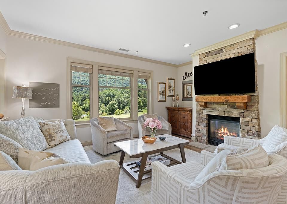 Gorgeous mountain view 3 bedroom/ 2 bath condo at the Maggie Valley Club! This home has beautiful LVP floors and an updated primary bath with a walk in tile shower. Lots of windows to let in the light. Cozy screened porch where you can sip your favorite beverage or curl up with a book or move inside and sit by the gas log fireplace when it's chilly. Conveniently located on the second floor – building has a elevator! There is an additional dedicated large storage closet on the same floor hallway for all the extra space you need! This desirable golf community allows short term rentals. Sports membership included in monthly fees gives you pool, tennis/pickleball courts, gym access and more! Easy level paved access. Close to Waynesville, Cherokee, Blue Ridge Parkway and Great Smoky Mountains National Park. Come enjoy all that Western NC has to offer!
