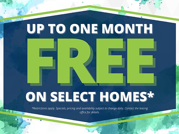 - Special offer! Up to One Month Free on select homes! *Restrictions apply. Specials, pricing and availability subject to change daily. Contact the leasing office for details.
