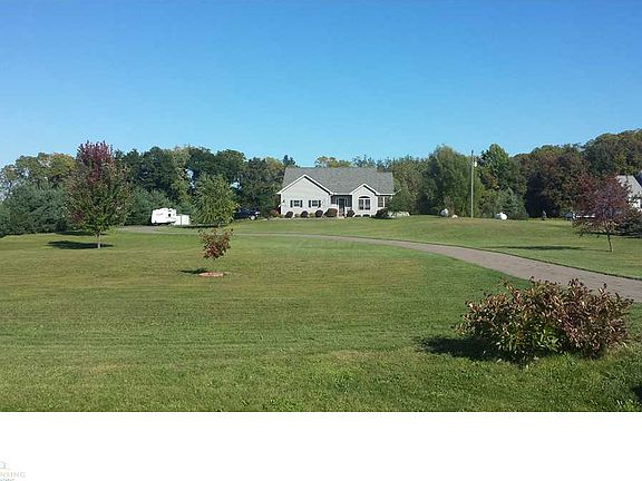Super sharp ranch in immaculate condition built in 2005 features 4 bedrooms, 2 baths, open floor plan w/ 12 ft ceilings, 1st floor laundry, finished daylight basement, 2 car attached garage, includes all appliances (except washer / dryer) and is situated on a beautiful 2.10 acre setting. Enter through a spacious foyer with a great built in coat rack/bench and also a full coat closet. The living and dining room are open to the kitchen. There is a slate tiled gas fireplace that makes the whole space warm and inviting. The kitchen has an island, pantry, and pull out shelving in the cabinetry. 3 bedrooms are on one end of the house with a full bath serving all. Master bedroom is tucked on its own; master bath has dbl vanity. The lower level has a large family room, a separate office nook with beautiful built ins, and a playroom/workout/hobby etc, plus two unfinished storage areas. Gorgeous stained wood trim and baseboards throughout, and 6 panel solid wood doors. There is a deck, shed, battery back up on sump pump. Lot is 175 x 575. 1 year Home Warranty provided.