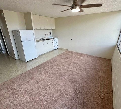 Holiday Manor Apartments. Partly renovated unit. This partly furnished studio, 1-bath unit consists of approximately 400 square feet of living space plus a lanai with NO parking stall. Appliances for this home include a refrigerator, range, disposal, and water heater.
