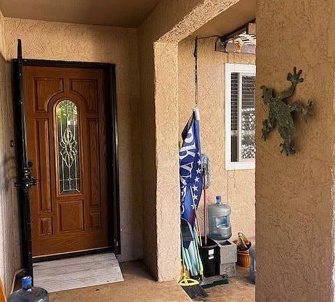 GREAT FAMILY OR VACTION HOME. Discover this beautifully updated single-story home, situated on a quiet cul-de-sac.you Walk in to the courtyard with plenty of room to enjoy sitting outside and enjoy a cup of coffee. Featuring 3 bedrooms and 3 baths. This custom-built home offers thoughtful designs and high-end finishes throughout. The kitchen features a travertine tile breakfast bar, soft-close cabinets, pull-out shelving, a built-in plate rack, a large pantry, and stainless steel appliances, including a dishwasher and refrigerator. Enjoy cozy evenings in the separate dining room, complete with a charming fireplace and expansive windows that bring in the natural light. A door leads directly to the backyard, perfect for indoor-outdoor entertaining. The Living room features a second fireplace and a custom-built entertainment center with bookshelves, plus a sliding glass door that opens to the side yard. Two of the bedrooms offer spa-like ensuite bathrooms with walk-in showers, creating serene retreats for relaxation. There is a large laundry room that connects directly to the attached 2-car garage. There is ample Boat/RV parking and all your other toys. Call today for a tour. Buyer to verify all.