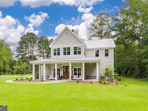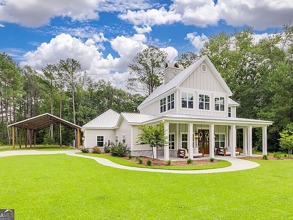 "A Honey Of A Farmhouse" - Like New Resale on 5 Acres in Effingham County! This exceptional custom-built home by Cypress Customs LLC is a rare opportunity to own a barely-lived-in modern farmhouse retreat, originally completed with meticulous attention to detail. Nestled on 5 private acres, this showstopping residence offers the perfect blend of upscale finishes and timeless character. Designed with an open-concept floor plan ideal for entertaining, the home features a dramatic two-story wood-burning fireplace with a stone surround, wood beams, and high-end LVP flooring throughout. The gourmet kitchen impresses with custom cabinetry, quartz countertops, a classic white Kohler farmhouse sink, and premium appliances. Craftsmanship shines through in the custom trim package, antique-style touches like a transom-topped laundry room door, and unique architectural elements reclaimed from the original early 1900s home once on the property. These include exposed antique beams, original interior doors, reclaimed brick accents in the powder room, and charming wall-mounted cast iron sinks. Modern conveniences like energy-efficient spray foam insulation pair seamlessly with rustic elegance. The result is a home that feels brand new but carries a sense of history and warmth that new construction simply can't replicate. Truly one-of-a-kind in Effingham County-this luxury farmhouse offers style, space, and serenity, just waiting for its next chapter. Schedule your private showing today-this gem won't last long!