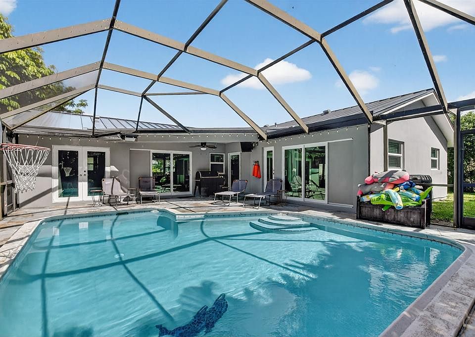 Newly priced! Beautifully upgraded 3-bedroom pool home in Country Club Village—no HOA! This move-in-ready gem features a new metal roof (2025), full impact windows & doors, and a split floor plan with an optional 4th bedroom/den. The chef’s kitchen boasts quartzite counters, stainless appliances, soft-close cabinets, and a custom pull-out pantry. Enjoy bright interiors with smooth ceilings, smart Hue lighting, and luxury vinyl floors. The primary suite offers French doors to the pool, custom closets, and a spa shower. Relax in your screened, heated pool with new pump and heater, surrounded by magical evening lights. Garage includes mini-split A/C—ideal for storage or workshop use; cast iron pipes have been re-lined. *This home qualifies for our Guaranteed Home Sale program!*