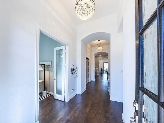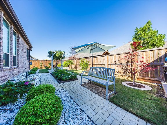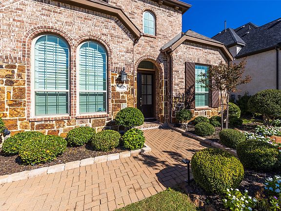 Welcome to this exquisite Highland-built single story in the heart of Star Trail, where elegant design meets thoughtful upgrades and resort-style living. Step inside through beautiful double French doors into a bright, open foyer with soaring ceilings, rich wood floors, and custom lighting that immediately set an elegant tone. A private study near the entry offers the perfect space for working from home. The chef’s kitchen is a true centerpiece, showcasing quartz countertops, chevron-pattern backsplash, 5-burner gas cooktop, stainless steel appliances, double ovens, and a large island that opens to the dining and family areas. The spacious family room features an elegant chandelier with a hidden fan, a cozy fireplace, and sliding doors leading to the beautifully landscaped backyard. Professionally designed front and back landscaping transform the space into a vibrant garden retreat, perfect for outdoor gatherings. Anchoring the dining space is a designer-tiled fireplace, creating a refined focal point that elevates every occasion. The primary suite features with a garden tub, dual vanities, a walk-in shower with custom tile, and a large closet that connects to the oversized utility room with added sink. Additional features include a media room, plantation shutters, custom light fixtures, and an epoxy-coated three-car tandem garage. Enjoy Star Trail’s resort-style amenities — pools, clubhouse, tennis courts, and playgrounds — plus a top-rated elementary school within the neighborhood. No MUD. No PID. Simply refined single-story living at its best.