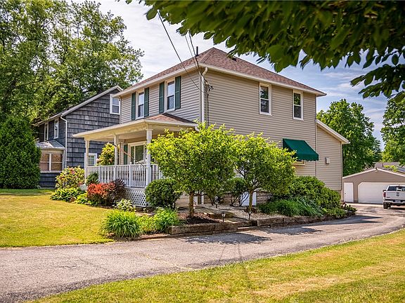 Welcome home to this impeccably maintained 2 story home!! The well manicured yard will catch your eye upon arriving! The covered front porch will be a great spot to enjoy these summer nights. Upon entering the home you will love the gleaming hardwood floors throughout the living and dining room. Large eat in kitchen with included appliances. The first floor offers a master suite with a full bath including a walk in shower. Upstairs you will find 2 bedrooms and a full bath. Full basement under the original home and under the master. The addition's basement has 12 foot ceilings and ample storage space. The original basement offers a half bath and workshop area. 200 amp service, glass block windows. Large 2 car detached garage in back with small side yard. Newer roof and furnace! This is one you surely will want to see.