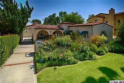 This classic Spanish beauty is located in highly coveted Verdugo Woodlands. The residence combines old world character with tasteful upgrades. The romantic courtyard features a welcoming front porch, a spacious courtyard & a fountain w/koi pond. Inside, the dramatic step down living room offers a vaulted barrel ceiling, an arched window & a large fireplace. Throughout the home are ebony stained hardwood floors and orig. French windows & doors. Entertaining is a breeze in the lg formal dining room adjacent to the upgraded Chef's kitchen. The kitchen includes 48'' professional DCS range & granite countertops. Additional amenities include tastefully updated baths an office or den. The sparkling pool & spa provide a cool respite from hot summer days & the patio is a perfect place to host backyard BBQ's.Lushly landscaped grounds with stunning roses, perennials and fruit trees for your enjoyment. Additional amenities: security system, surround sound in LR, tankless water heater.