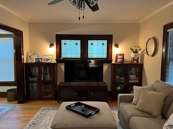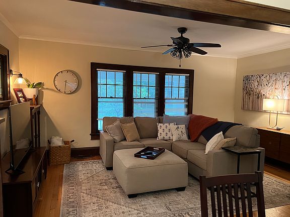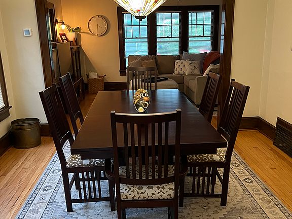 Situated on historic Layton Blvd, this cute bungalow is setup nicely for medium term rental or short term rental for your group or family. This large home has five queen size beds and two full bathrooms. Additionally there is a fenced in yard, two car garage, and additional parking pad. This updated home retains the historic charm and style with the new kitchen and bathrooms. Hardwood floors, decorative lighting, built in china cabinet, and stained glass keep the charm of a century ago.