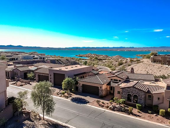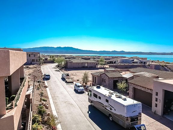 Great Close Up Panoramic Rear Lake View from all the home living areas when built. Check out the lake view photos from the living elevation. Largest on the street, almost double sized lot with extra large build pad, and plenty of room for a very nice pool, patios, and landscape. This lot is planned for huge lower garages, including Double RV and expansive living above with 180 degree unobstructable lake views throughout. Enjoy this exclusive gated Sailing Hawks 'Mesquite Bay' neighborhood of million dollar homes. Short walk to Mesquite Bay lake access and only one mile from Windsor Beach Launch Ramp. House plans, including RV Garage, provided with the purchase.
