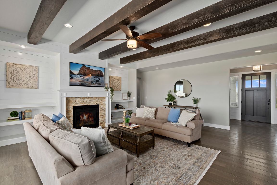Detached shopStone fireplaceFire pitProfessional landscapingOpen floor planOversized attached garageGourmet kitchen