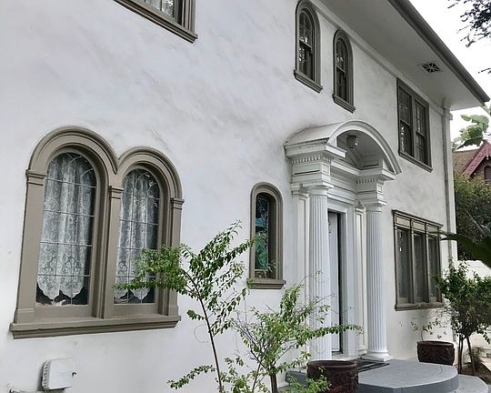 Mediterranean Revival in La Fayette Square HPOZ. This home has great curb appeal and sits in the heart of the Square on a premium lot with over 13000 plus square ft. Features a formal foyer, four bedrooms and four baths, accents of Mahogany throughout, hardwood floors, various stained glass windows, French doors, leaded glass windows and coffered ceilings. There is a formal living room with flow to an adjacent den. The formal dining room with a picture window overlooks the spacious yard. There is bonus space on the third level accessible by a formal staircase (not included on the sq footage). There is a two car detached garage. Home in need of TLC! Sale subject to sellers finding a replacement home. Please contact agent for more details. HPOZ.